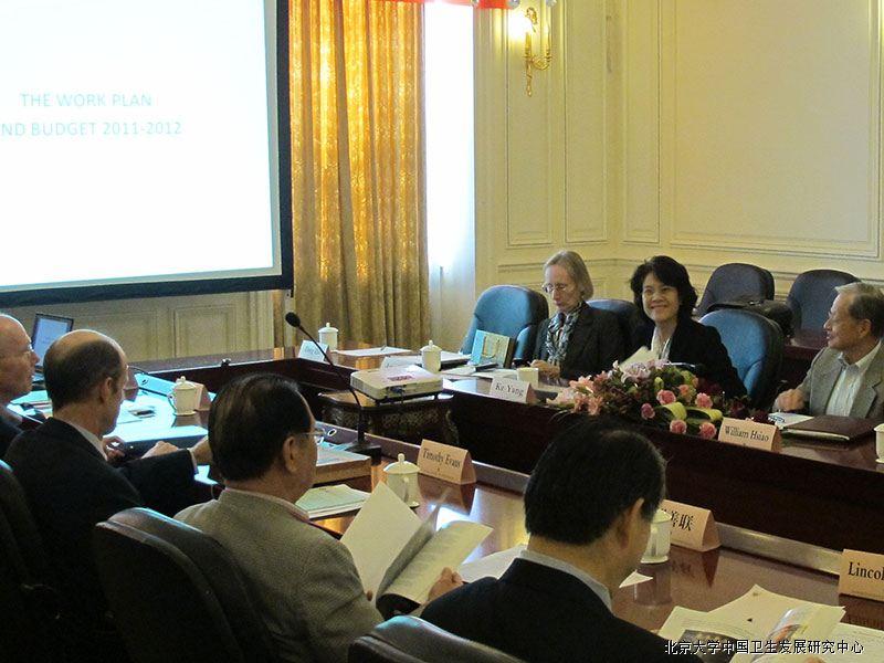Prof. Meng Qingyue delivered a comprehensive report on the progress and future development plan of the Center. Since its establishment, the Center has received the dedicated support from Peking University Health Science Center and China Medical Board in terms of finance, work conditions and innovative institutional arrangements. Under the leadership of the Board, the Center has during its first year specified its development goals and research priorities; actively recruiting qualified faculty and staff members and formed a basic research team; actively applying for research grants and has been conducting many research projects funded by WHO, World Bank, Ministry of Health and the EU; successfully organized the Launch Meeting of World Health Report 2010 and Health Financing Symposium sponsored by MOH and WHO; organized along with the Chinese delegation to the First Global Symposium on Health System Research, making a crucial contribution to winning the bid for hosting the Second Global Symposium on Health System Research in Beijing; has published a dozen of research papers on international and Chinese journals; its researchers have participated in a number of investigation and evaluation mission of China’s Health System Reform; its own police brief Health Development Outlook has been well received and made significant influence on policy discussion and making.