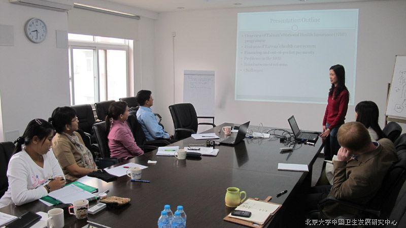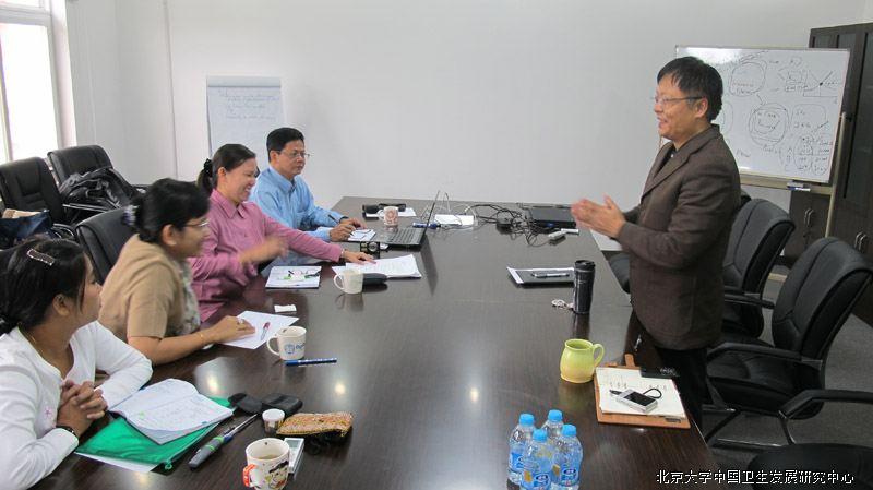 Members of the study tour pointed out that Myanmar is designing a new health financing system. Their mission is to learn from China’s recent health system reform especially its experience with the New Rural Cooperative Medical Scheme. During the 5 days of their visit, a workshop was held between the delegates and CCHDS researchers and. CCHDS researchers introduced the delegates to the overall situation of China’s health system reform, development of health financing, pharmaceutical policy, public hospital reform, and the universal health insurance scheme of Taiwan. Discussion was held on the feasibility of new health financing system in Myanmar. The study group will be visiting local NCMS administrations and residents for a closer look at the management and operation of the NCMS fund under the arrangement of CCHDS.
