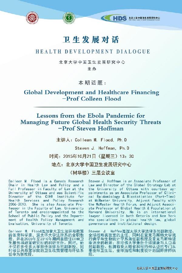 Speaker:Prof Steven Hoffman&Prof Colleen Flood