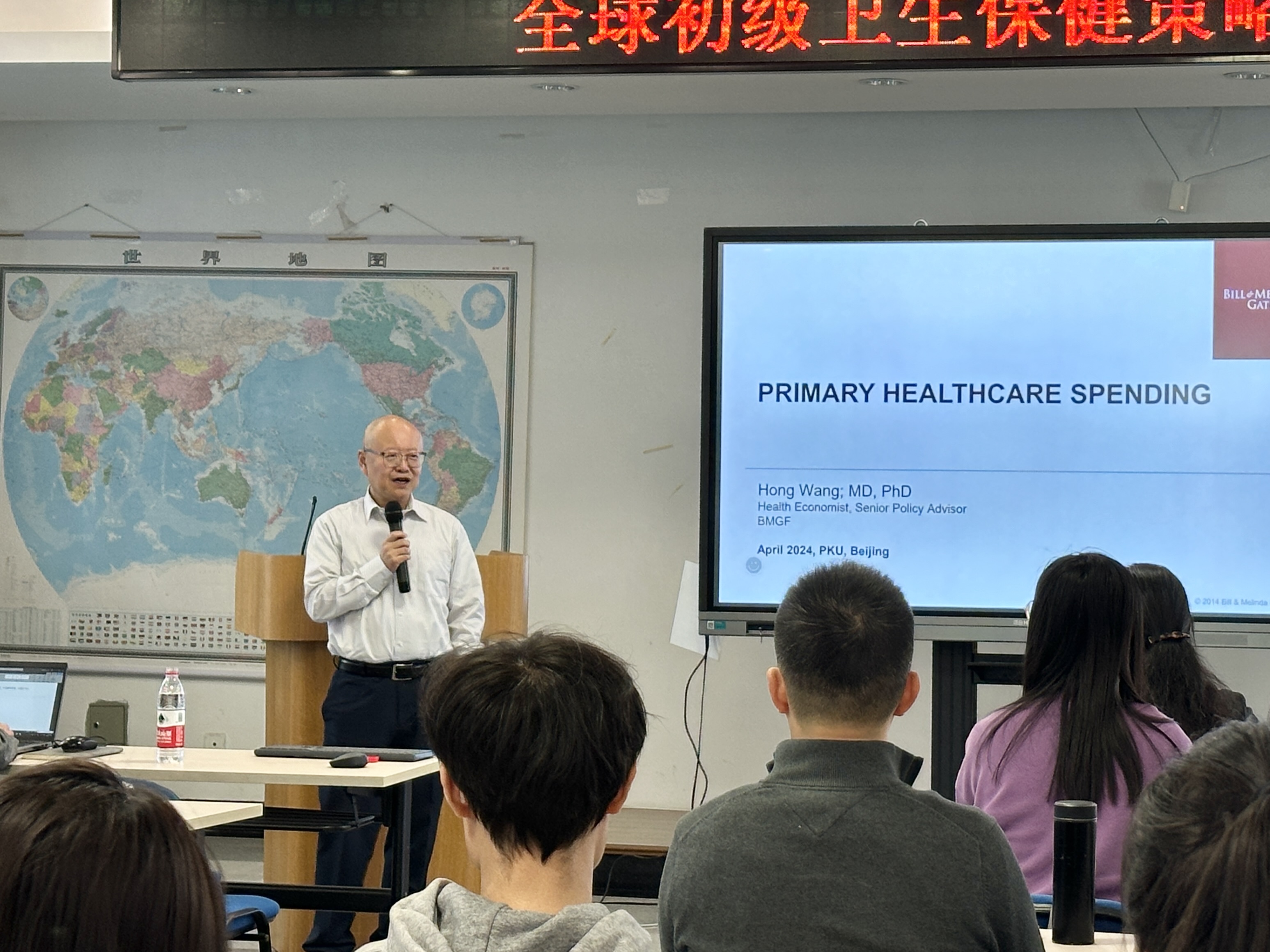 4月2日,比尔及梅琳达∙盖茨基金会卫生经济、筹资和卫生系统领域的高级政策顾问与高级项目官员、美国华盛顿大学全球卫生系兼职教授汪宏教授应邀在北京大学中国卫生发展研究中心树华楼三层会议室举办学术讲座,讲座主题为“全球初级卫生保健策略与挑战”。讲座由北京大学公共卫生学院院长詹思延教授和中国卫生发展研究中心主任任明辉教授主持,公共卫生学院教师和学生等40余人参加了本次讲座。