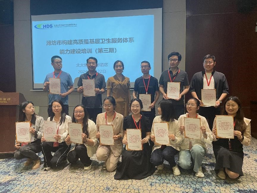 2024年5月21日至23日,北京大学中国卫生发展研究中心(以下简称“中心”)成功举办“潍坊市构建高质量基层卫生服务体系能力建设培训项目(第三期),潍坊市相关卫生机构管理人员和首席公卫医师团队代表一行39人参加了培训。本次培训旨在通过理论与实践相结合的方式,提高基层实践者对整合型卫生服务和医防融合服务的理解,提高地方改革者在政策设计和实施上的能力,进一步推动构建高质量基层卫生服务体系。
