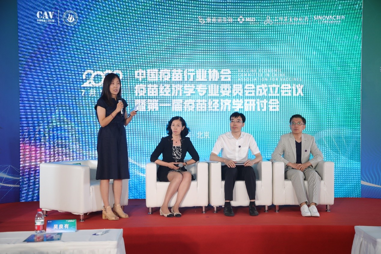 中国卫生发展研究中心方海教授,中国疾病预防控制中心免疫规划中心马超研究员、西安交通大学药学院副院长方宇教授、山东大学公共卫生学院常务副院长孙强教授、天津大学药物科学与技术学院吴晶教授、复旦大学公共卫生学院卫生经济学教研室主任应晓华教授、康希诺生物股份公司党委书记谢辉女士就我国疫苗经济学的重点研究问题开展了圆桌讨论。