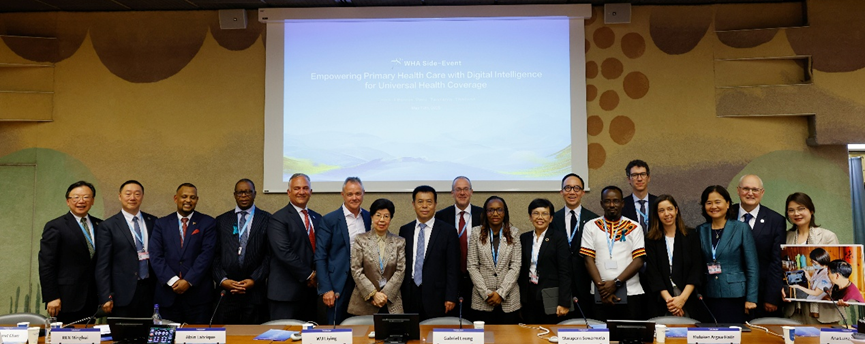 2025年5月19日,第78届世界卫生大会开幕第一天,中国国家卫生健康委员会联合埃塞俄比亚、秘鲁、坦桑尼亚和泰国,在日内瓦联合国万国宫成功举办了题为“数智赋能初级卫生保健、促进全民健康覆盖”(Empowering Primary Health Care with Digital Intelligence for Universal Health Coverage)的大会官方边会。