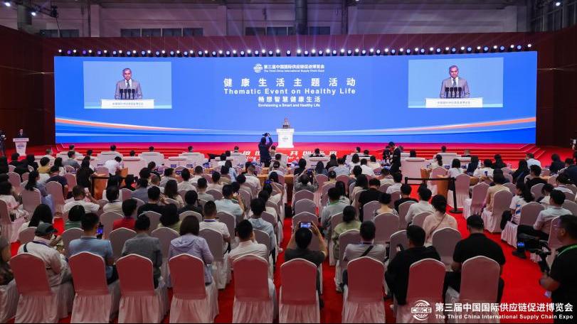 7月18日下午,第三届中国国际供应链促进博览会健康生活主题活动“畅享智慧健康生活”在京成功举办,本活动由中国国际商会主办,北京大学中国卫生发展研究中心作为支持单位全程参与活动筹备。中国贸促会副会长李兴乾、联合国驻华协调员常启德、北京大学中国卫生发展研究中心主任、北京大学全球卫生研究院院长任明辉出席并致辞。