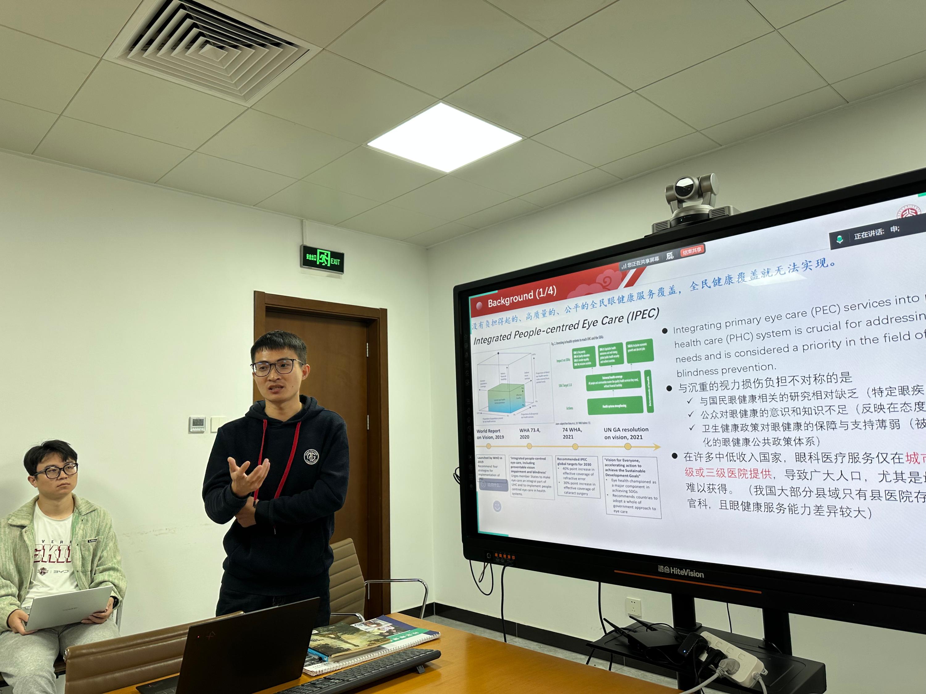 论坛现场董晓东博士以 “初级眼保健纳入基本公共卫生服务的模式构建和卫生经济学评价” 为主题展开分享。他阐述了将初级眼保健纳入基本公共卫生服务的重要性与现实意义,介绍了在我国农村地区构建可推行模式的探索路径。同时,运用卫生经济学评价方法,对该模式的成本效益等进行分析,论证其可行性与潜在价值,为初级眼保健更好地融入基层卫生服务体系提供了思路。