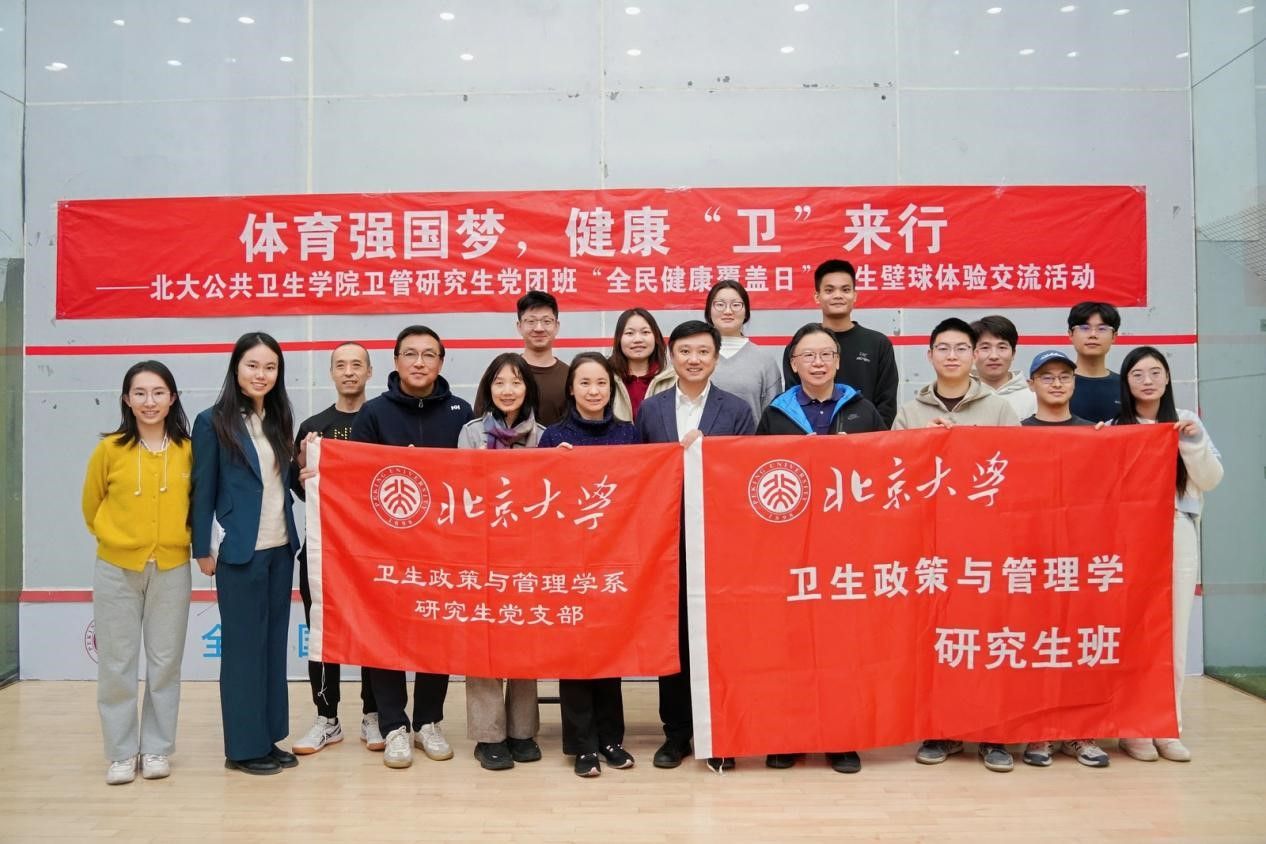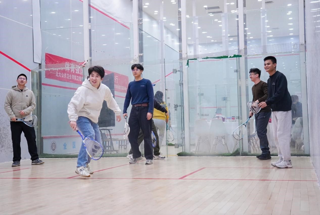 2025年12月11日下午,为响应国家“体育强国”与“健康中国”战略,迎接“全民健康覆盖日”,北京大学公共卫生学院卫生政策与管理学科研究生党团班联合北京大学壁球协会,在邱德拔体育馆壁球厅举办“体育强国梦,健康‘卫’来行”壁球体验交流活动。