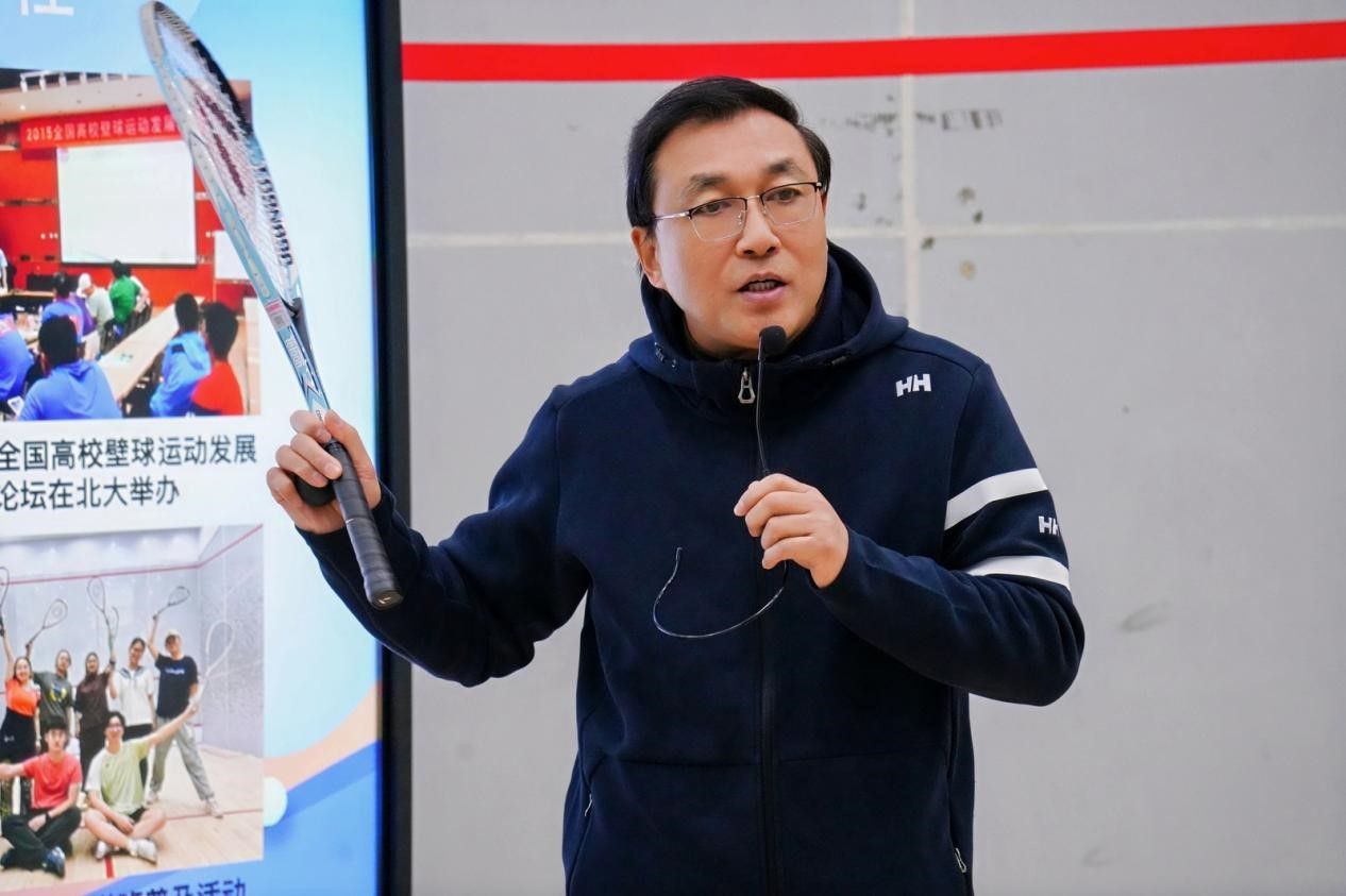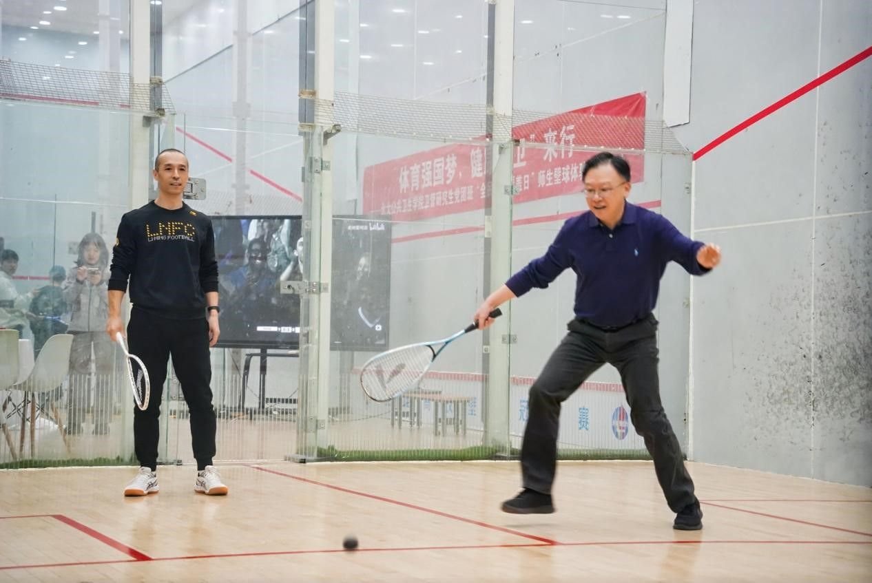 中心主任任明辉老师结合专业背景强调了活动的特殊意义。他指出,中心作为世卫组织唯一的全民健康覆盖合作中心,在“全民健康覆盖日”前夕参与此次活动寓意深远。任老师分享了自己对壁球运动的关注,表示很高兴能与同学们一同走上球场,以亲身体验响应全民健康的号召。