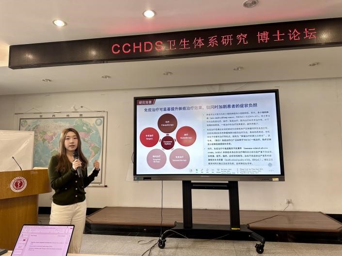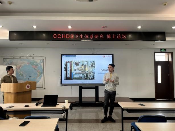 2025年3月10日,中国卫生发展研究中心第三届CCHDS卫生体系研究·博士论坛在树华楼三楼会议室顺利举行。中心博士夏祎祺、王延赏以“健康干预实验”主题向中心师生分享了他们的研究成果与学术心得。中心马晓晨教授主持本次论坛,北京大学中国卫生发展研究中心副主任袁蓓蓓教授、北京大学中国卫生发展研究中心何平教授参加本次博士论坛,中心马晓晨教授主持本次论坛,中心博后老师、博士生、硕士生等四十余名师生参与本次博士论坛。