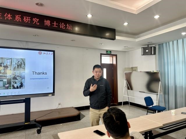 中心何平老师,作为两位主讲人的导师做了本次博士论坛的总结发言。何老师结合两人既往的科研经历和如今的学术成果,将博士研究的重点难点进行了剖析。鼓励中心同学们应以“北大”学术人为标准,上下求索,不怕困难,做更多有价值有意义的学术研究。