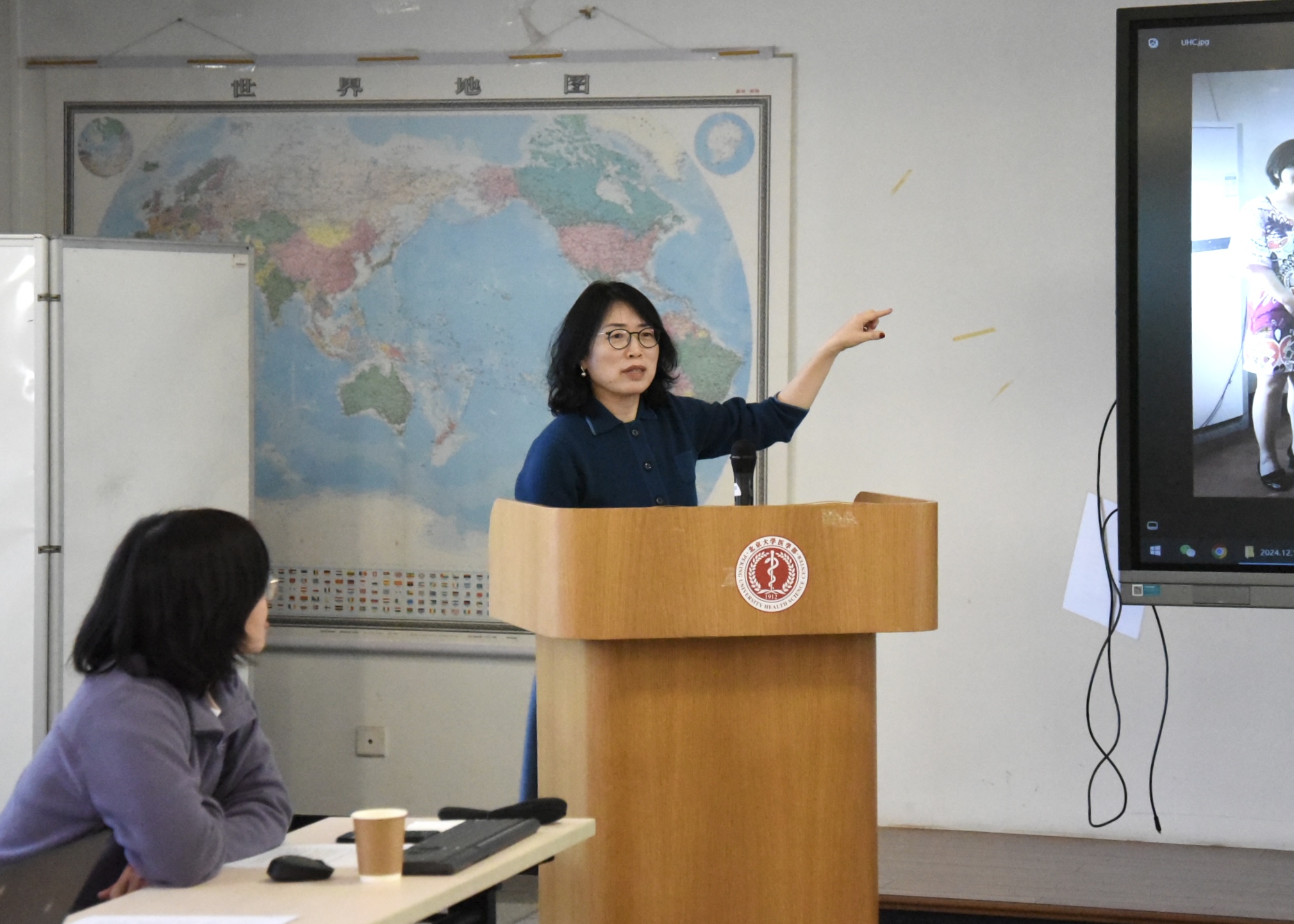 任明辉主任首先对各位到场的领导、专家和中心师生表示了欢迎,感谢大家在百忙之中参加本次座谈会,共同庆祝世界卫生组织全民健康覆盖合作中心的成功建立。随后,任明辉主任展示了世界卫生组织全民健康覆盖日的海报,强调了全民健康覆盖研究与政策推进的重要意义。
