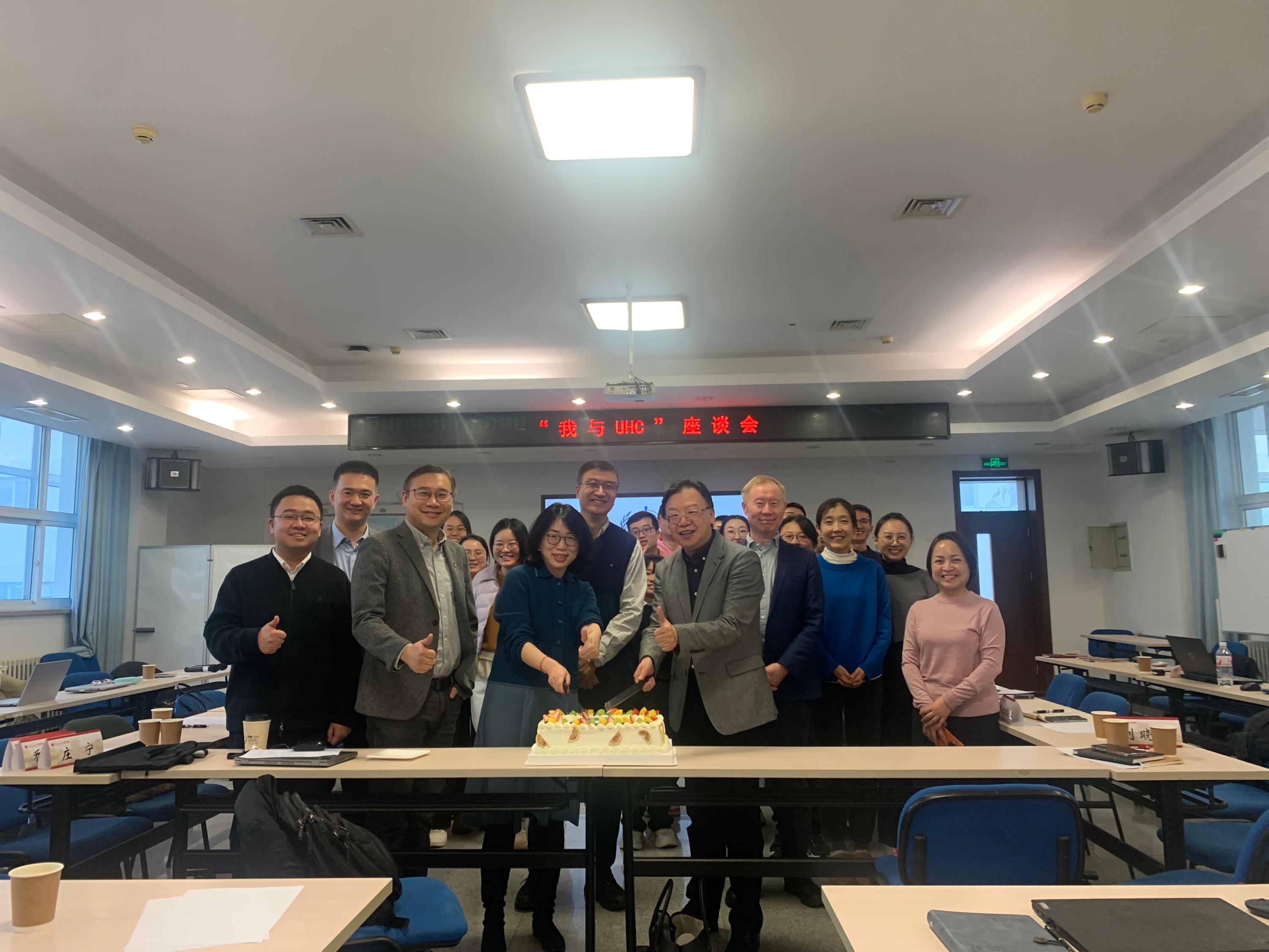 会议的最后,全体参会人员共同分享了印有世界卫生组织全民健康覆盖日标志的蛋糕,本次会议在热烈的讨论与分享中落下帷幕。